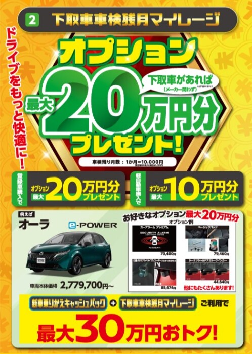 登録車で最大20万円分、軽自動車で最大10万円分お得に!!