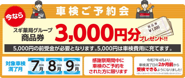 最後に車検満了月が7月、8月、9月のお客様へ