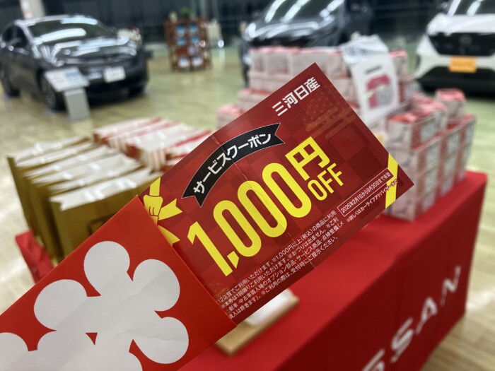 三河日産で使えるサービスクーポン『1,000円OFF』