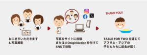 のタグをつけてサイトもしくはSNSへ投稿すると、写真投稿1枚につき給食5食分が
