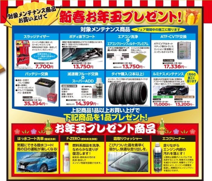 対象メンテナンス商品をお買い上げでお年玉プレゼント!!