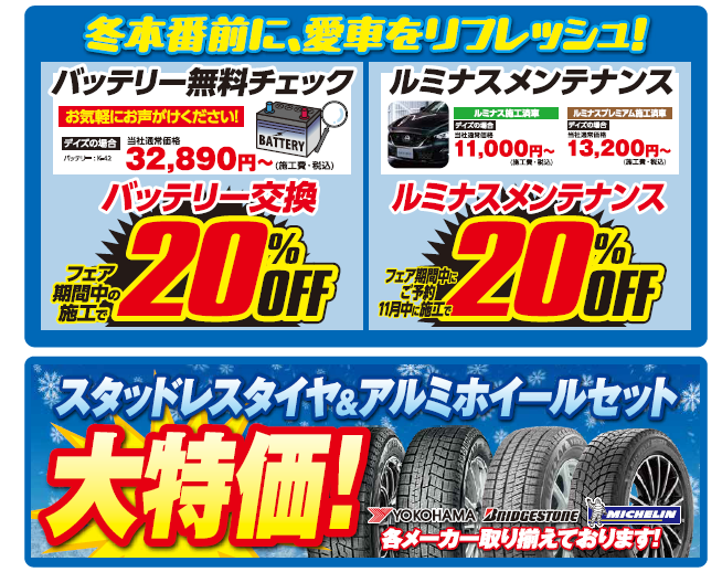 バッテリー交換・ルミナスメンテナンスなんと20%オフです!
