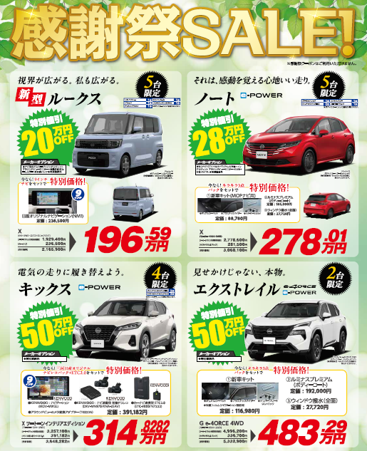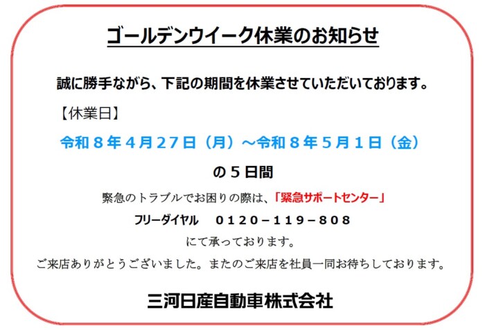 三河日産では5/2(土)~5/10(日)まで感謝祭を開催いたします![]()