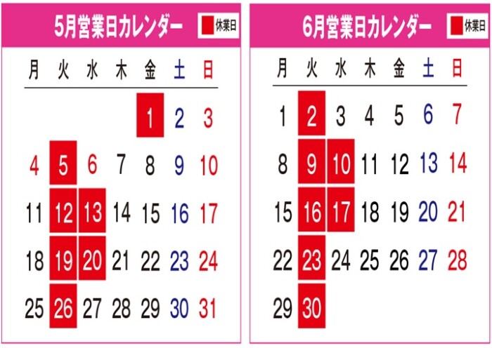 〇5月6月の営業日カレンダー〇
