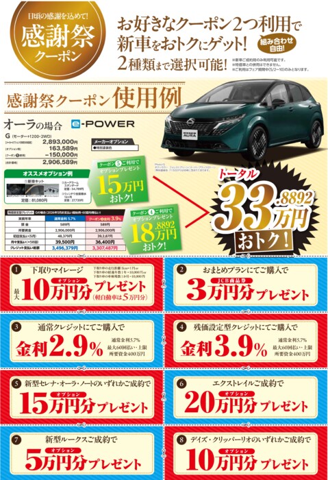 感謝祭クーポンを利用して新車をお得に購入できます!