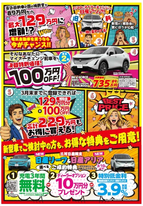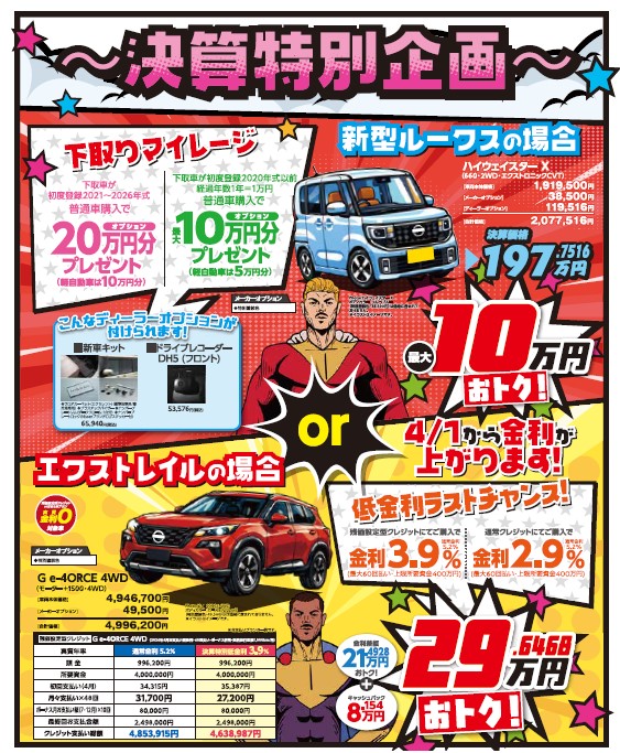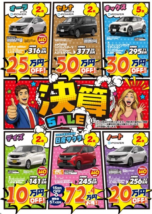 2026年03月05日/西尾今川店 決算 限定車 あります! こんにちは 三河日産西尾今川店です 3/7(土)~3/15(日)まで 決算フェアを開催致します この期間限りのお買い得なお車が多数ございます ぜひお立ち寄りください! ★詳しくはこちらをクリックしてください お問い合わせは 三河日産自動車㈱ 西尾今川店 (0563)53-8723 まで ★下記メンテナンス商品15%OFF‼にてご提供 ★★★★★★★★ 定休日のお知らせ ★★★★★★★★ 0読み込み中...