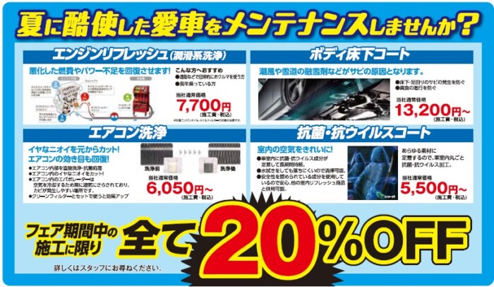 秋のお出かけ前にメンテナンスはいかがでしょうか?